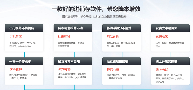 好生意作为用友进销存软件的一款产品,价格便宜、使用方便、功能齐全。无论是小型批发企业还是微型商贸公司,都可以根据自身需求进行选