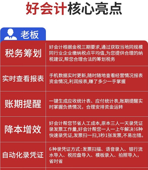 5. 性价比高:好会计软件价格相对较低,性价比高,可以为企业节省成本。
