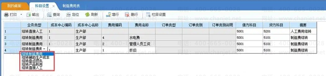 1、【成本管理】-【设置】-【科目设置】,维护业务类型、成本中心、费用编码、科目和摘要