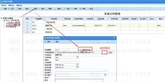 2、打开路径之后,可以设置文档分类:选择质量文档管理点击增加的是一级分类,选择对应的一级分类增加,增加的是二级分类。末级分类需要勾选【是否末节点】