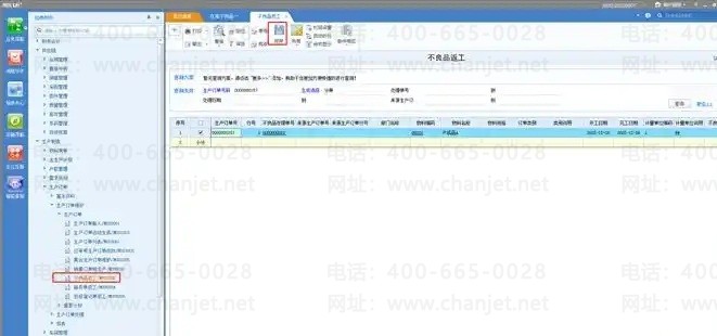 生产部门根据不良品处理单中的返工数量,生成《生产订单》的返工生产订单,进行返工处理,返工领料时,库存根据返工生产订单生成材料出库单,同时根据领用的返工品减少冻结量。