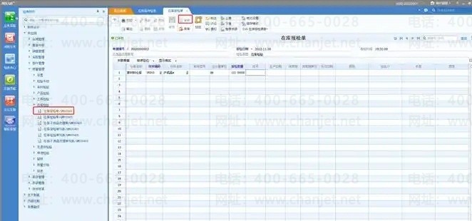 1、打开在库品待检表,勾选需要检验的记录行点击报检,生成在库品报检单并审核