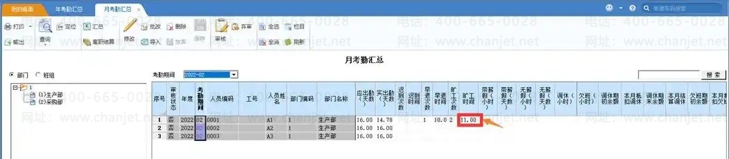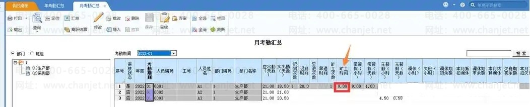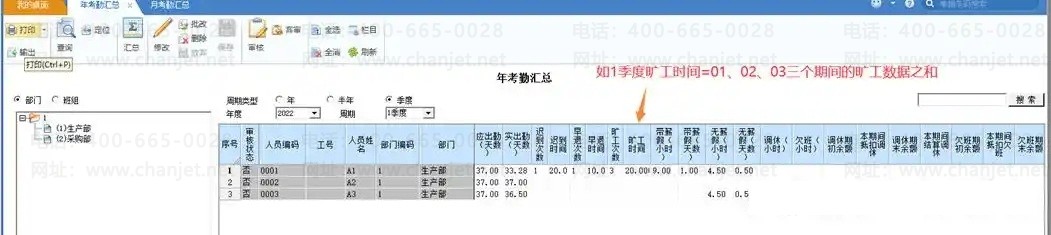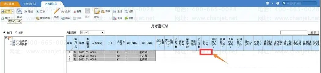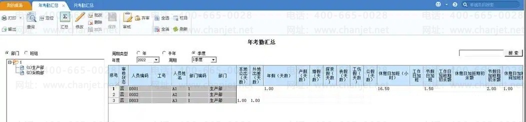 如查询第一季度A1人员的迟到、早退,加班、请假等数据可以直接到查看月考勤汇总2022-01、2022-02、2022-03三个考勤期间的月考勤汇总数据
