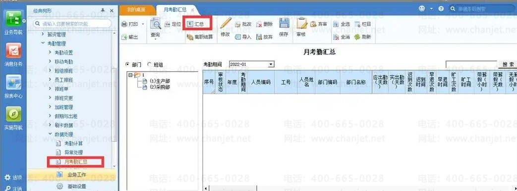 2、【数据处理】-【月考勤汇总】,点汇总