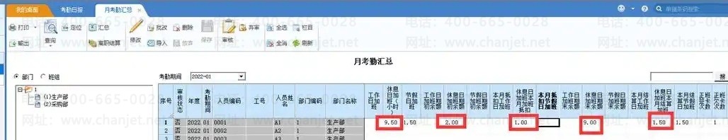 “调休期末余额”、“ 欠班期末余额”、“ 休息日加班期末余额”、“ 工作日加班期末余额”、“ 节假日加班期末余额”这些余额,则取的是月考勤汇总的期初+本期