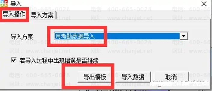 D、切换到“导入操作”页签,选择导入方案,点“导出模板”