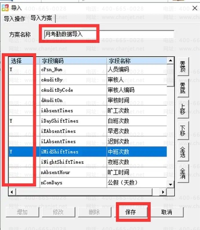 C、输入“方案名称”,选择要导入的那些字段,点“保存”