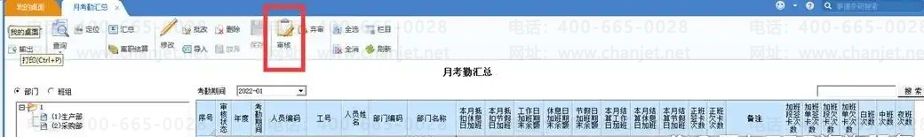 6、确认月考勤数据无误后,点“审核”,审核后,数据变成灰色,无法修改、批改、导入来调整数据