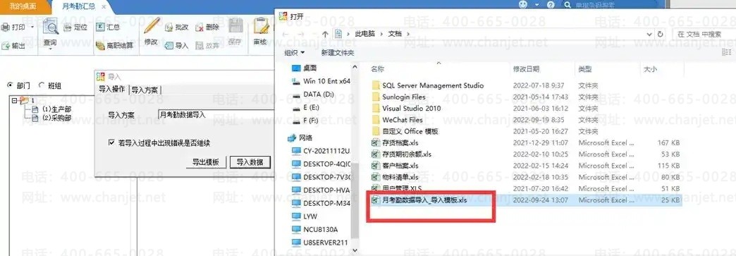 G、【数据处理】-【月考勤汇总】,点“导入”,弹出导入界面,选择“导入操作”页签,点“导入数据”导入数据,选择导入模板,点“打开”