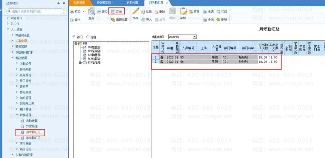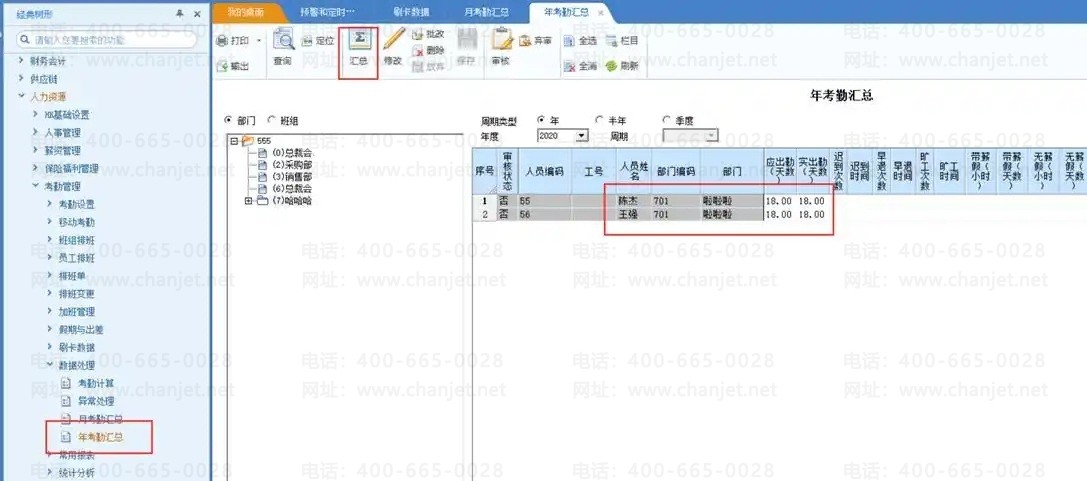 4、打开月考勤汇总表和年考勤汇总表,点汇总,相关人员的数据就会更新了;查看考勤日报的数据也会更新。