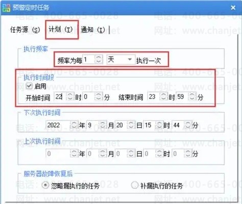 d) 服务器故障恢复后:若下次执行时间大于当前系统时间,则该任务是否需要执行根据该选项:忽略漏执行的任务,则该次任务不需执行;补漏执行的任务,则对该次任务进行补发处理。
