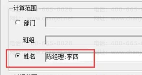 5) 计算范围:分为两种方式:部门和班组、人员。可多选,如果为空则代表全选。