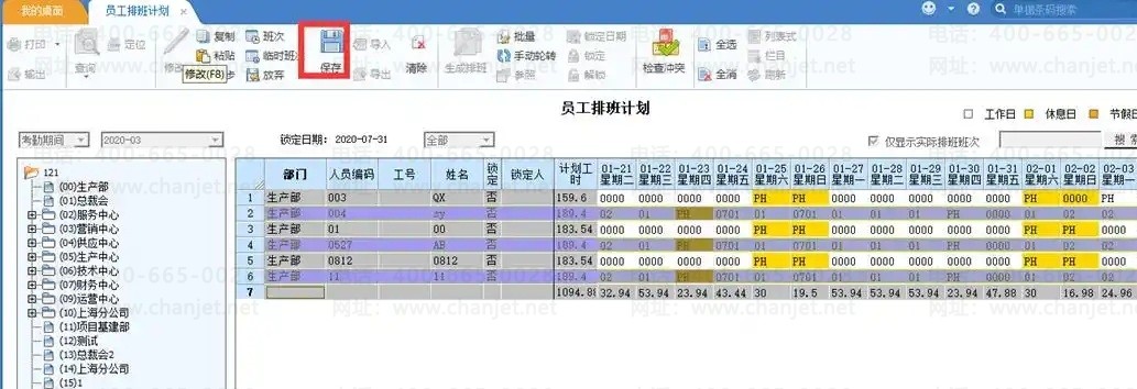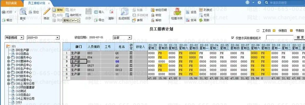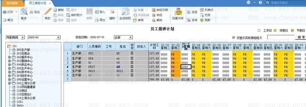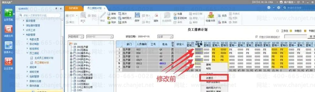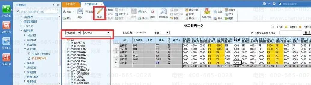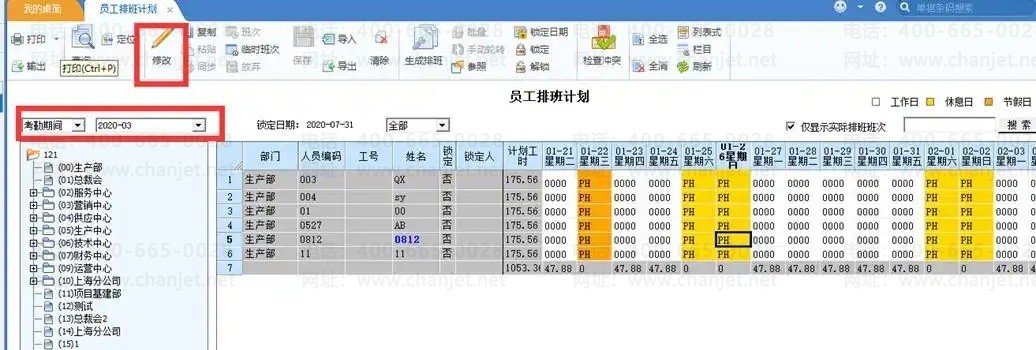 1、考勤管理-员工排班-员工排班计划,选择考勤期间,点“修改”