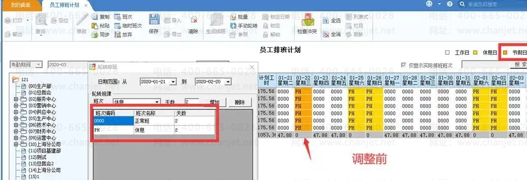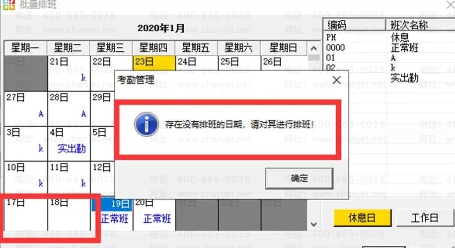 必须所有日期都排班,否则会提示:“存在没有排班的日期,请对其进行排班!”