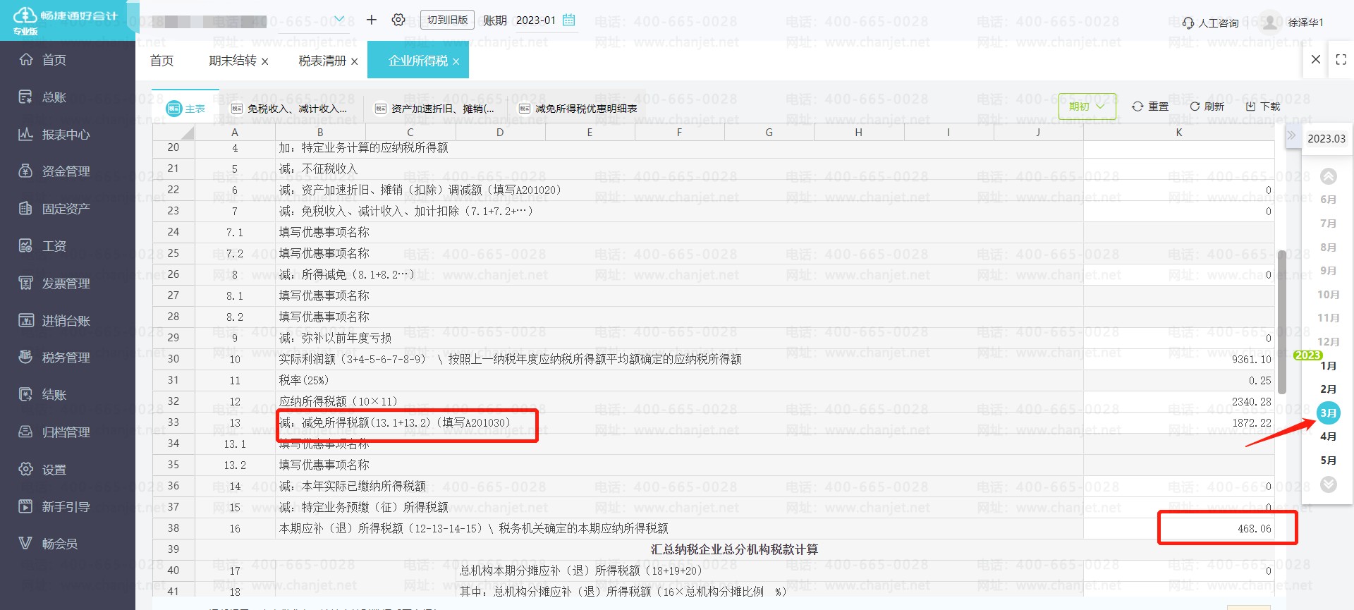 ③、好会计除了可以智能计算并计提所得税的凭证之外,还可以在左侧菜单栏中【税务管理】-【企业所得税】税表中,体现小型微利企业享受减免所得税优惠政策的具体列示。如下图所示。