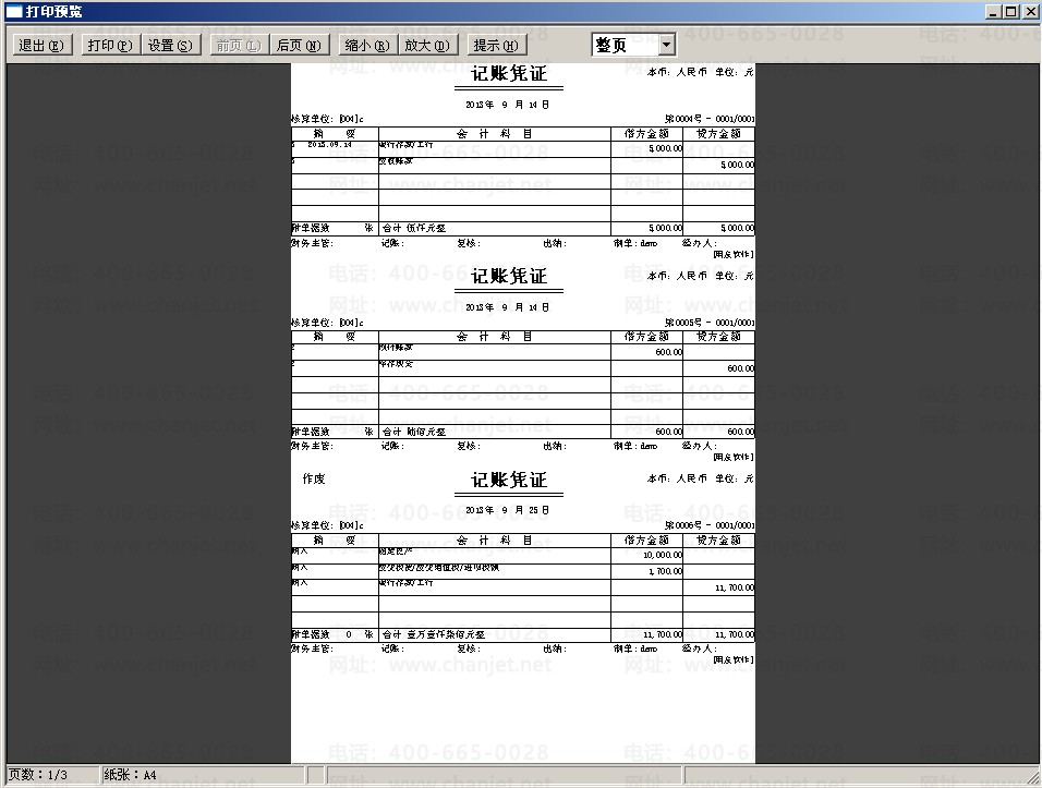 一般一张A4纸预览时默认只能打印两张凭证,如何能打印三张凭证
