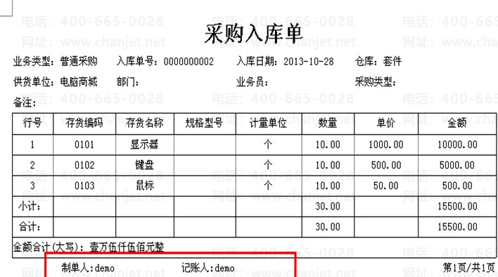 案例中采购入库单为例使用新打印解决
