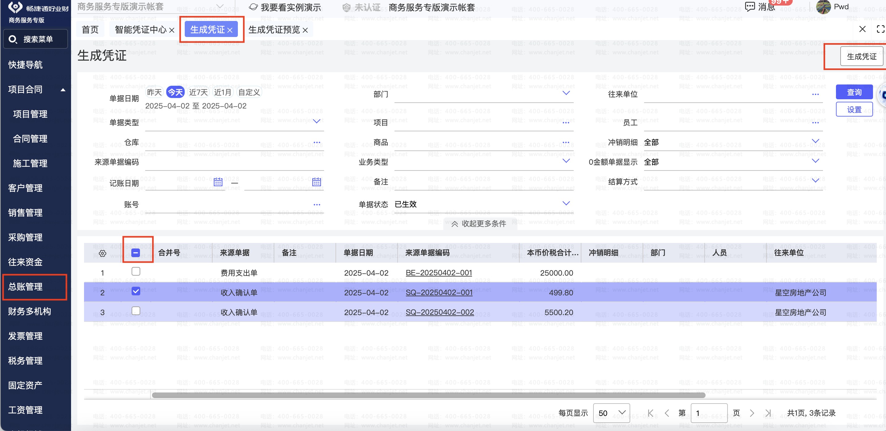 通过好业财,将采购、销售、生产、仓储等所有业务流程统一在一个平台管理。业务单据(如采购入库单、销货单)审核后,系统可 自动生成财务凭证,数据实时同步至总账系统,彻底告别重复录单和手工制证。