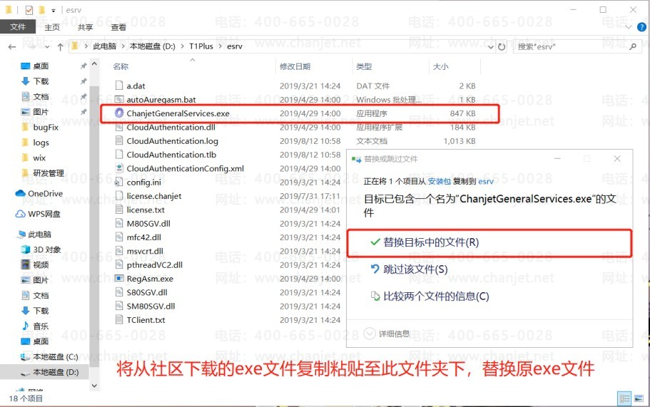 6、将下载的 ChanjetGeneralServices.exe 文件拷贝至此目录下,替换原文件。