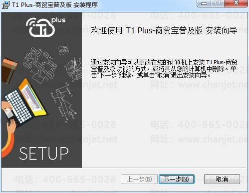 1、双击打开“T1Plus-商贸宝普及版.msi”,点击下一步