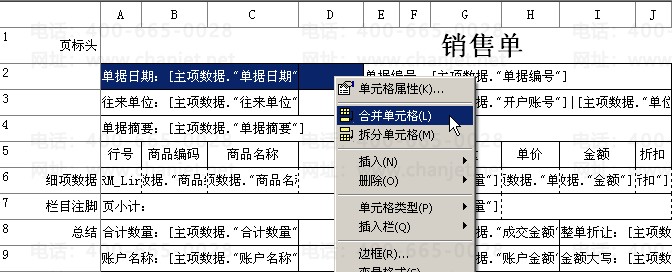 ②拆分:选中需要拆分的单元格,并点击右键,选择“拆分单元格”。拆分的个数与报表上方的“ABCD”保持一致,最小的单元格就不能再拆分了。