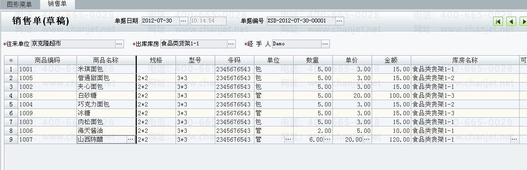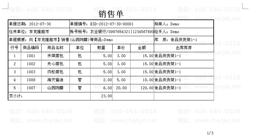 销售单使用了多仓库出库,需要根据表内明细仓库进行分仓库打印,即每页只打印相同仓库的商品。