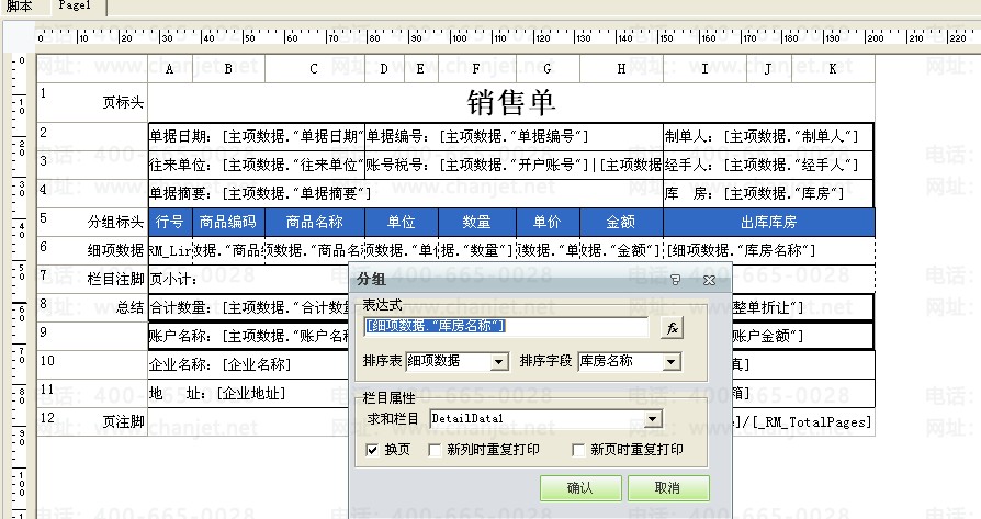 3、确认后预览如下图。(该样式在打印报表设计中预览不会进行分组排序,需要保存样式后在单据中预览。)