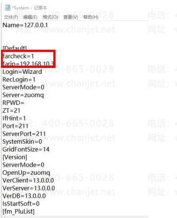 4、farcheck=1 为生效,当等于 0 时无效!farip=192.168.10.3 ,farip=后面是指定找加密狗的 ip 地址,可以修改,本机直接是 127.0.0.1。这样设置后,客户端访问服务器数据,但是加密识别找指定的 IP地址对应的电脑插入的加密狗。