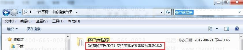2、如下图,找到之前安装路径是“D:\商贸宝程序\T1-商贸宝批发零售版标准版 13.0”