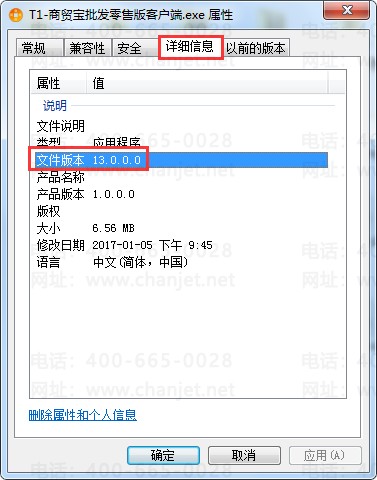 4、再点击详细信息,里面的文件版本指的就是软件版本。如下图,显示的就是批发零售版 13.0.