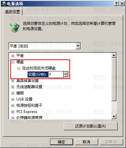 G、将“在此时间后关闭硬盘”时间设置为0;