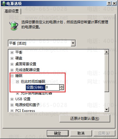 H、将“在此时间后睡眠”时间设置为0;