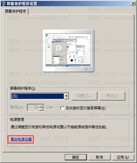 D、在屏幕保护程序界面,“更改电源设置”;