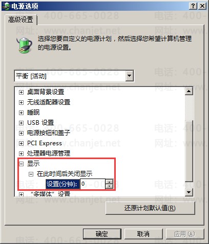 J、将“在此时间后关闭显示”时间设置为0;