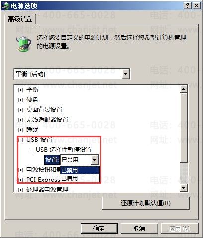 I、将“USB选择性暂停设置”更改为“已禁用”;