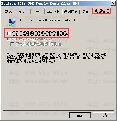 C、将“电源管理”中的“允许计算机关闭此设备以节约电源”勾选项去掉后保存。