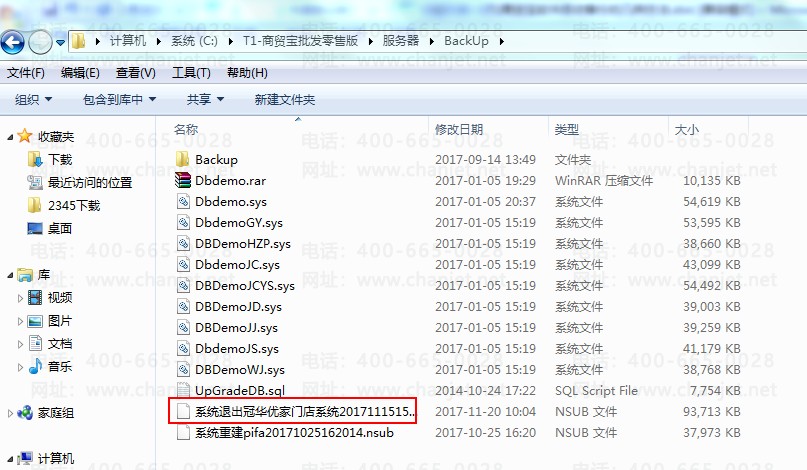 设置了“系统退出时自动进行备份”,备份的文件是默认保存在软件的安装目录\服务器文件夹\BackUp文件夹里,如:C:\T1-商贸宝批发零售版\服务器\BackUp