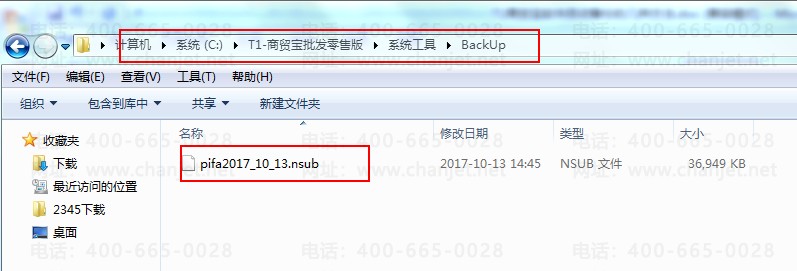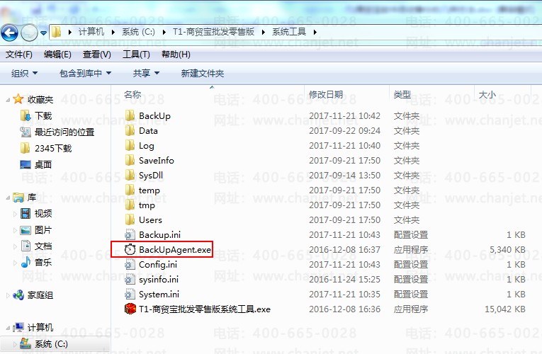 选择生成自动备份文件方法来自动备份的数据文件是默认保存在软件的安装目录\系统工具文件夹\BackUp文件夹里,如:C:\T1-商贸宝批发零售版\系统工具\BackUp。