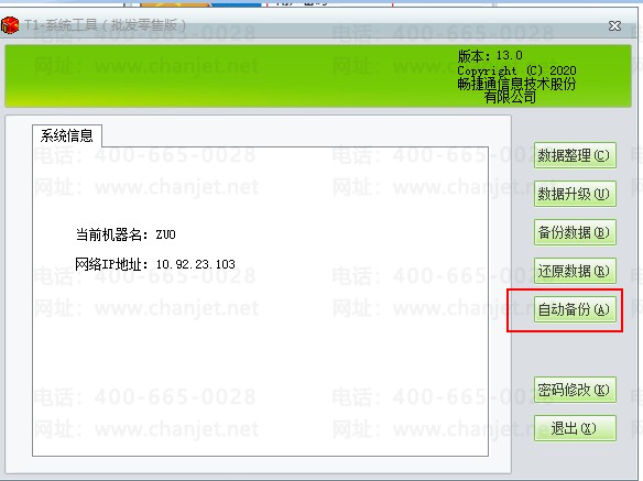 在T1-商贸宝批发零售版系统工具里点击自动备份。