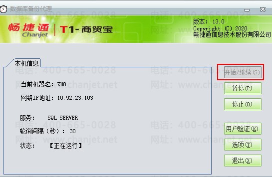 数据库自动备份代理的图标像一个小闹钟,数据库自动备份代理的状态一定要是正在运行,如果它没运行,商贸宝软件是不能自动备份数据的。