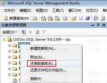①、打开数据库的企业管理器,右键数据库,所有任务,还原数据库