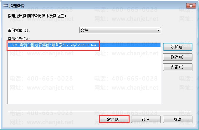 ②、点击从设备,选择设备,添加,点击添加按钮,选择具体备份文件,点击确定恢复