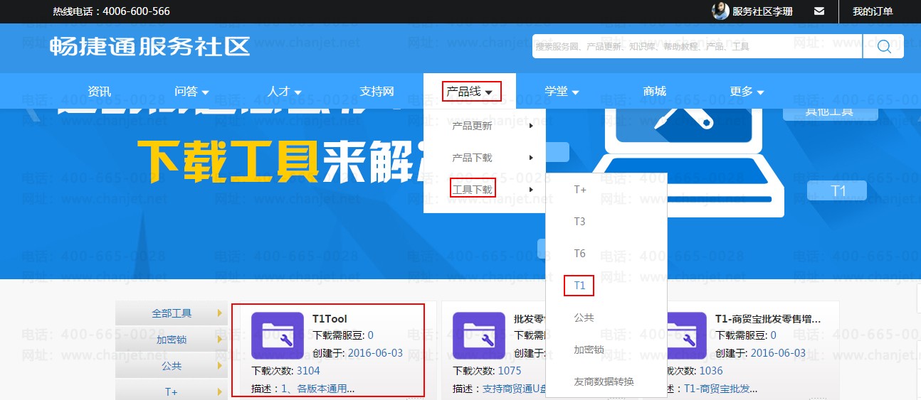 三、在服务社区,产品线,工具下载,T1中下载T1 tool工具,使用版本通用下的账套信息检测查看软件具体版本