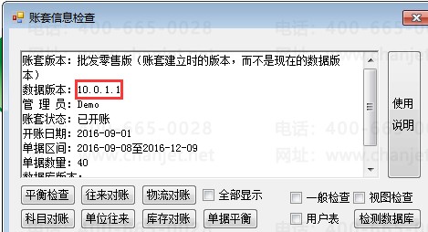 如上图,数据版本显示是10.0.1.1.目前只有财贸宝才是此版本。重新回到数据库表sub_list,将刚刚添加的账套记录中flgver值修改为9.最后给客户安装财贸宝软件和最新补丁即可正常登录软件。