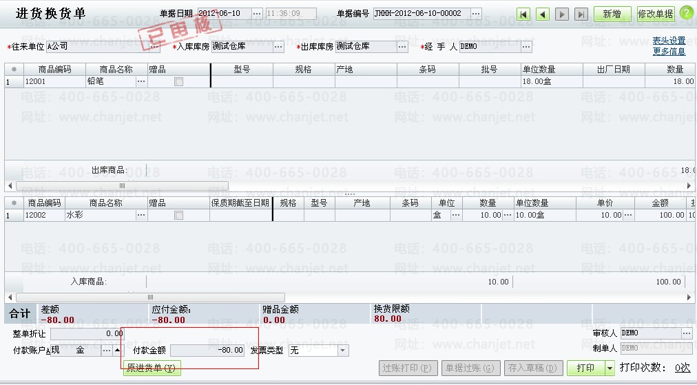 缺点是:需要核销进货单和进货换货单,稍显麻烦。