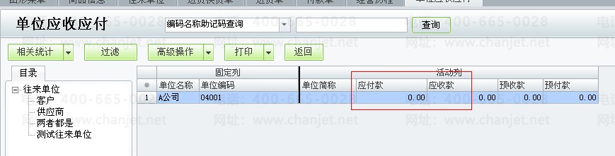 此时查看单位应收应付信息时发现并不会造成应收应付的增减变动。
