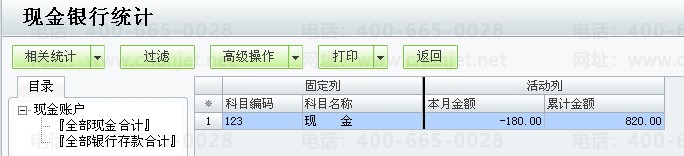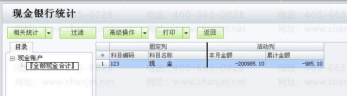 此时记录的现金余额为-985.10,在整个过程中只支付20元的差价,那么最后的现金科目的余额应该是-1005.10.这个结果可以在后面验证。