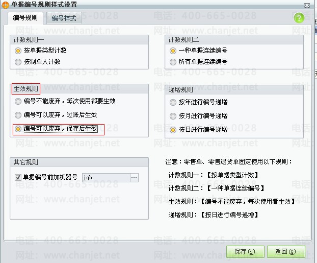 此问题是由于单据编号的生效规则设置为“编号可以废弃,保存后生效”,如图所示:
