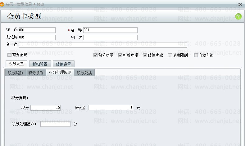 当会员卡类型中勾选“累计折扣”功能时,可设置不同金额区间或积分期间打不一样的折扣,注意金额区间和积分区间是累计积分情况而不是某单的成交金额或消费积分。