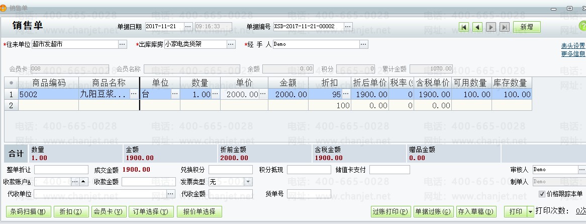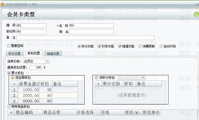 说明:累计折扣设置中的范围是指本次销售之前该客户已经累计消费的金额数,与本次消费金额没有关系。